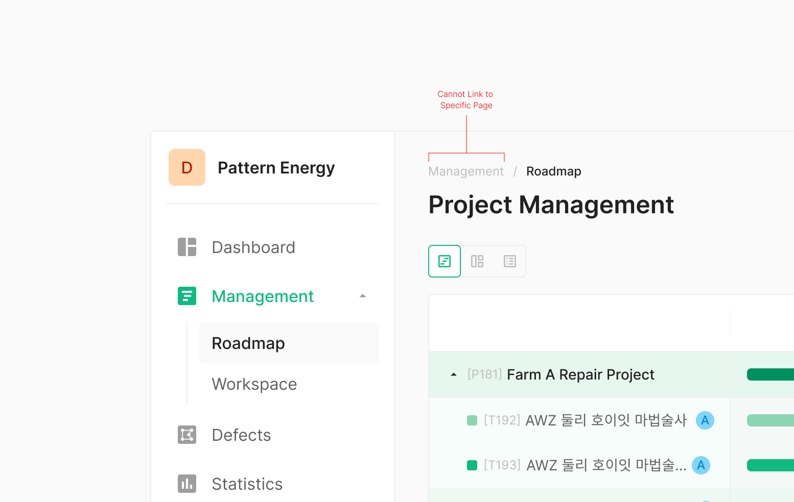 Breadcrumb의 Item의 상태는 해당 페이지로 Link되는 상태와 별도의 상태가 없는 상태로 사용되어 집니다. 후자의 경우 현재의 Tab이 페이지가 별도로 존재하지 않는 특정 Parents에 종속 되어 사용되는 경우에 사용합니다.