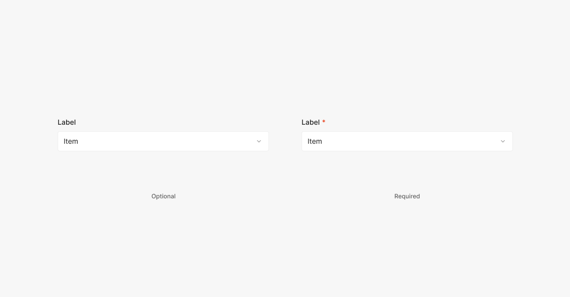 해당 입력 값이 필수 값인 경우를 표기하기 위해서 사용 됩니다. Label과 4px 간격을 두고 표기하는 것이 특징이며 필수 값에는 '*'을 표기하고, 필수가 아닌 선택값일 경우에는 별도의 표기 없이 Label만 사용하는 것이 특징입니다.