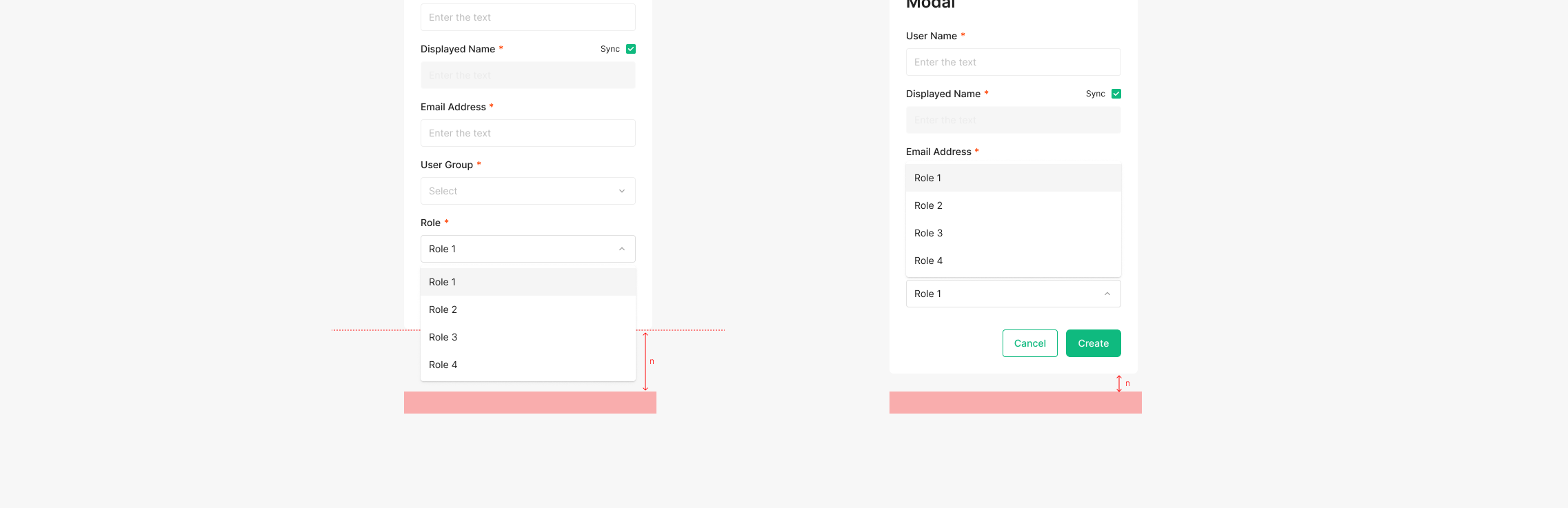 해당 입력 값에 대한 에러(alert)를 띄우는 경우로, 입력값에 대한 필수 요건에 대한 설명을 표출해 주는 것이 특징입니다. 별도의 Action (e.g. Confirm Button)후에 표출되는 것이 특징이며 Dropdown Button의 Outline의 색상과 함께 Text Alert을 함께 표출 해주는 것이 특징입니다.