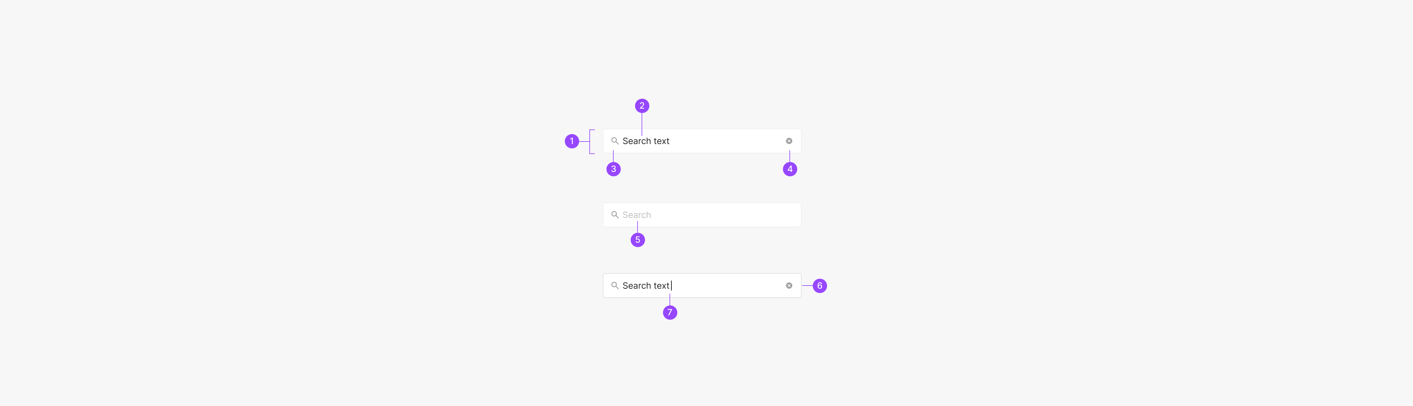 Search Input을 Text의 입력을 통해서 원하는 정보를 찾을 수 있습니다. Search의 경우 다른 Input Component와 다르게 'Fill=On' 일 경우 Cancle (Clear All) Icon Btn을 표출하는 것이 특징입니다.