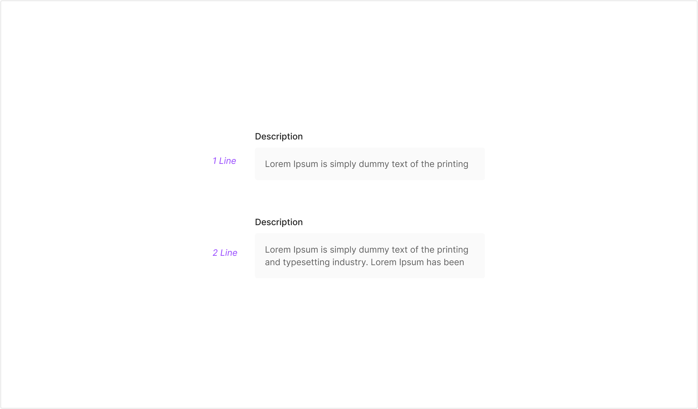 설명성 텍스트를 읽기 쉬운 형태로 전달하기 위해 사용됩니다. 주로 안내 문구, 상태 설명, 부가 정보와 같이 읽기 중심의 콘텐츠에 활용되며, 내용 길이에 따라 1줄 또는 2줄 이상의 형태로 확장하여 사용할 수 있습니다.