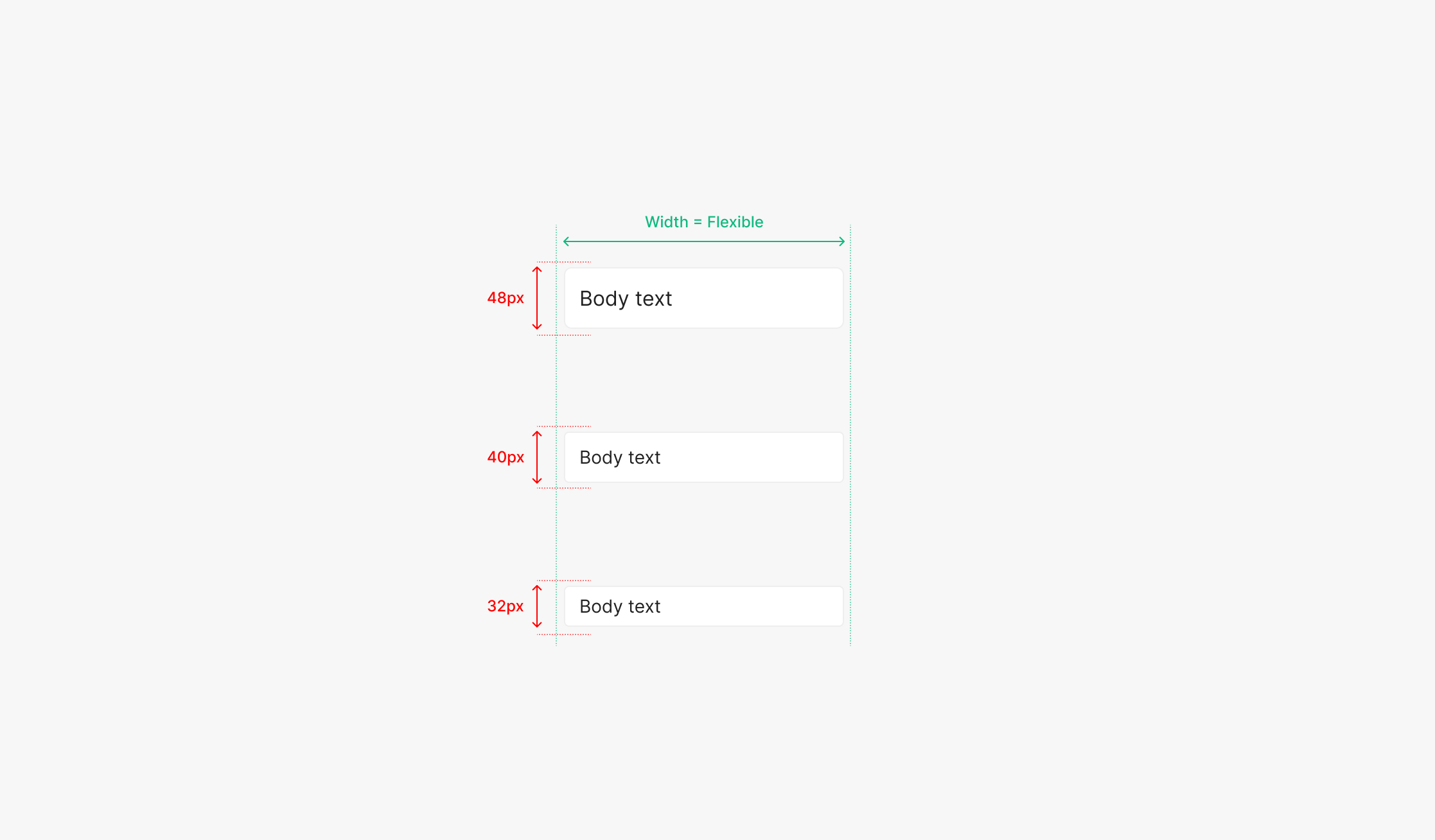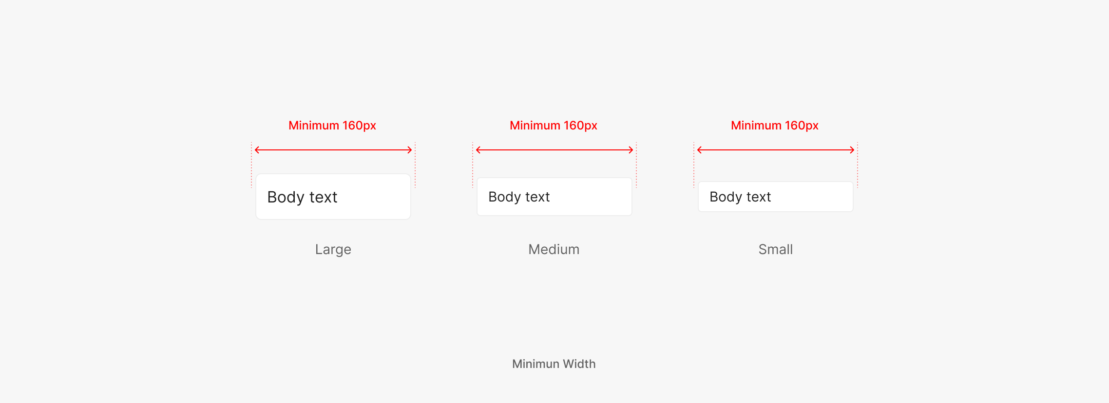 Width의 경우 일반적으로 들어가는 영역에 따라서 Flexible하게 구성이 되어 지며 Minimum Width는 160px를 최소값으로 가집니다.