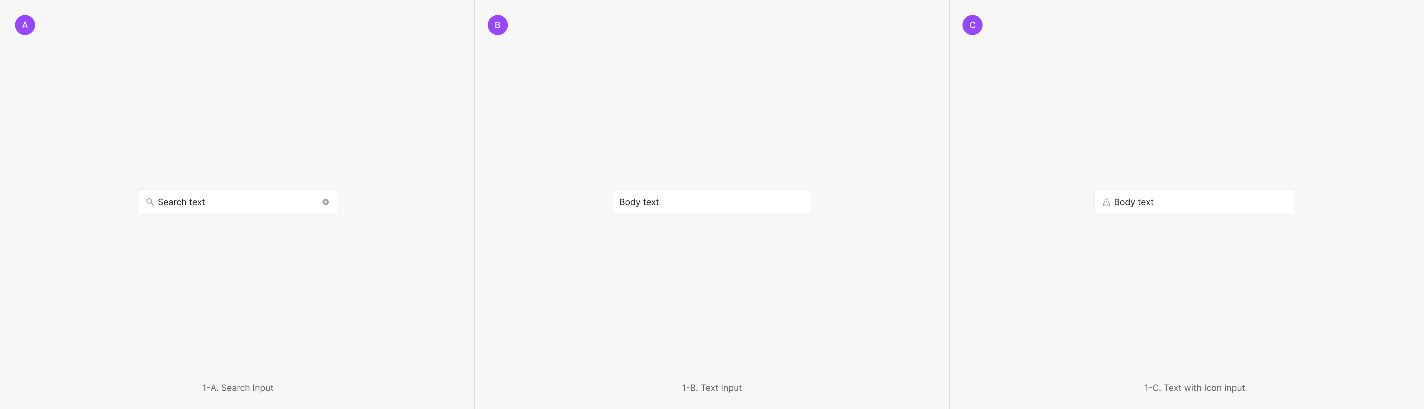 Input은 Text를 입력하고 편집 할 수 있는 Component로 Text를 입력하는 Text Input, Text Input with Icon 그리고 Text 입력을 통해서 특정 값을 Search하는 역할을 하는 Search Input이 있습니다.