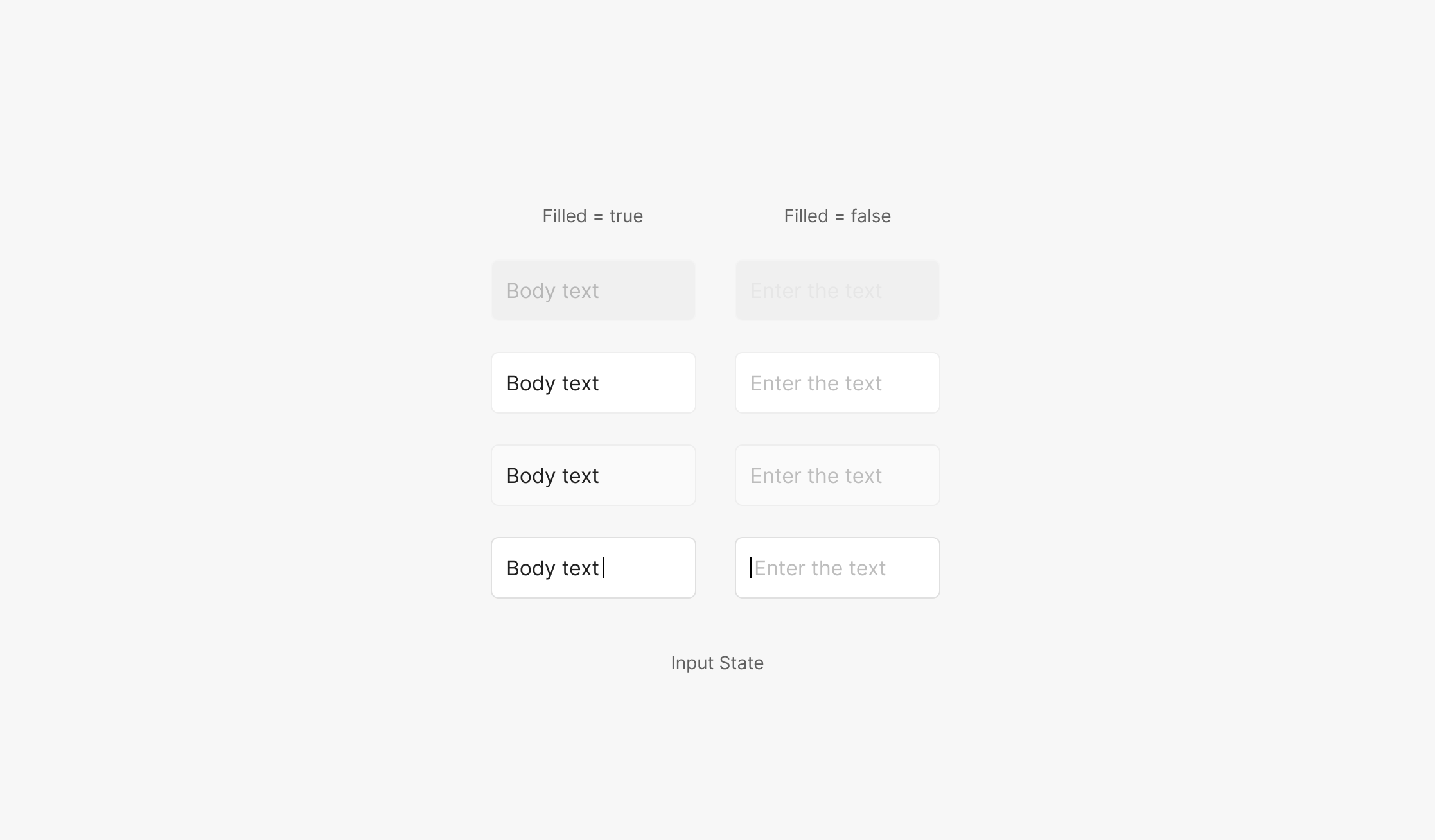 Input의 State는 4가지 (Disabled, Default, Hover, Focused)로 구성 되어져 있습니다.