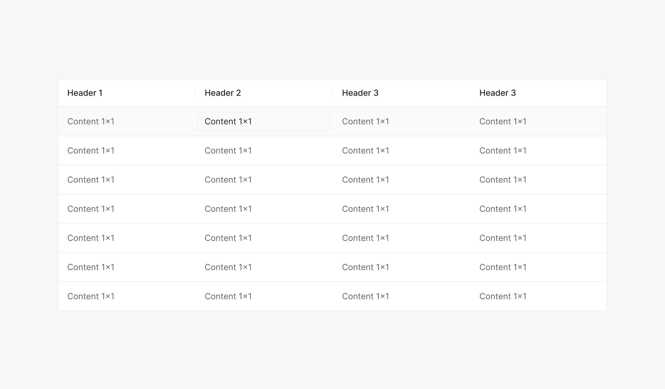 Table 혹은 List 내에서 즉각적으로 수정이 가능하도록 합니다. Table 및 List에서 사용되는 Input의 경우 Hover, Focused 상태에서 기존 Primary Type의 Input과 동일한 상태로 표출 되는 것이 특징입니다.