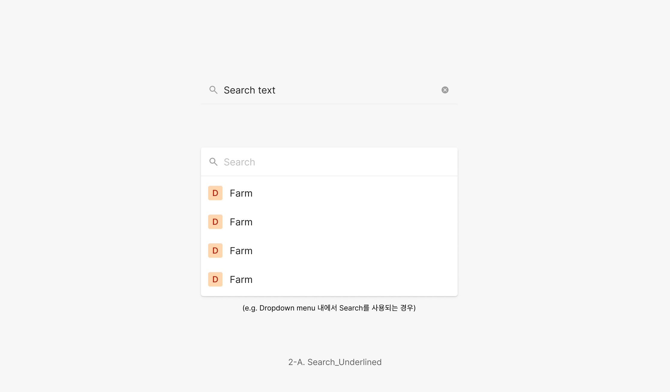 다른 컴포넌트 안에서의 아이템을 검색을 위해 사용 되는 경우로, Underline을 가지는 형태