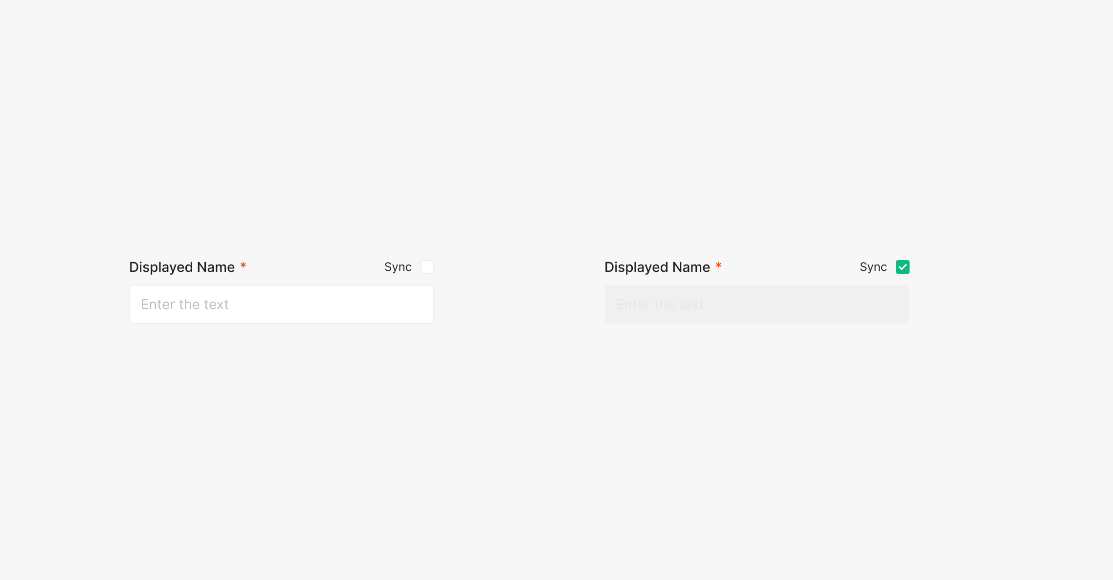 Label의 우측에 위치하게 되는 Sync Checkbox의 경우 해당 Input에 입력하게될 데이터 정보를 연동하여 자동으로 Sync 해주는 역할로 사용됩니다.