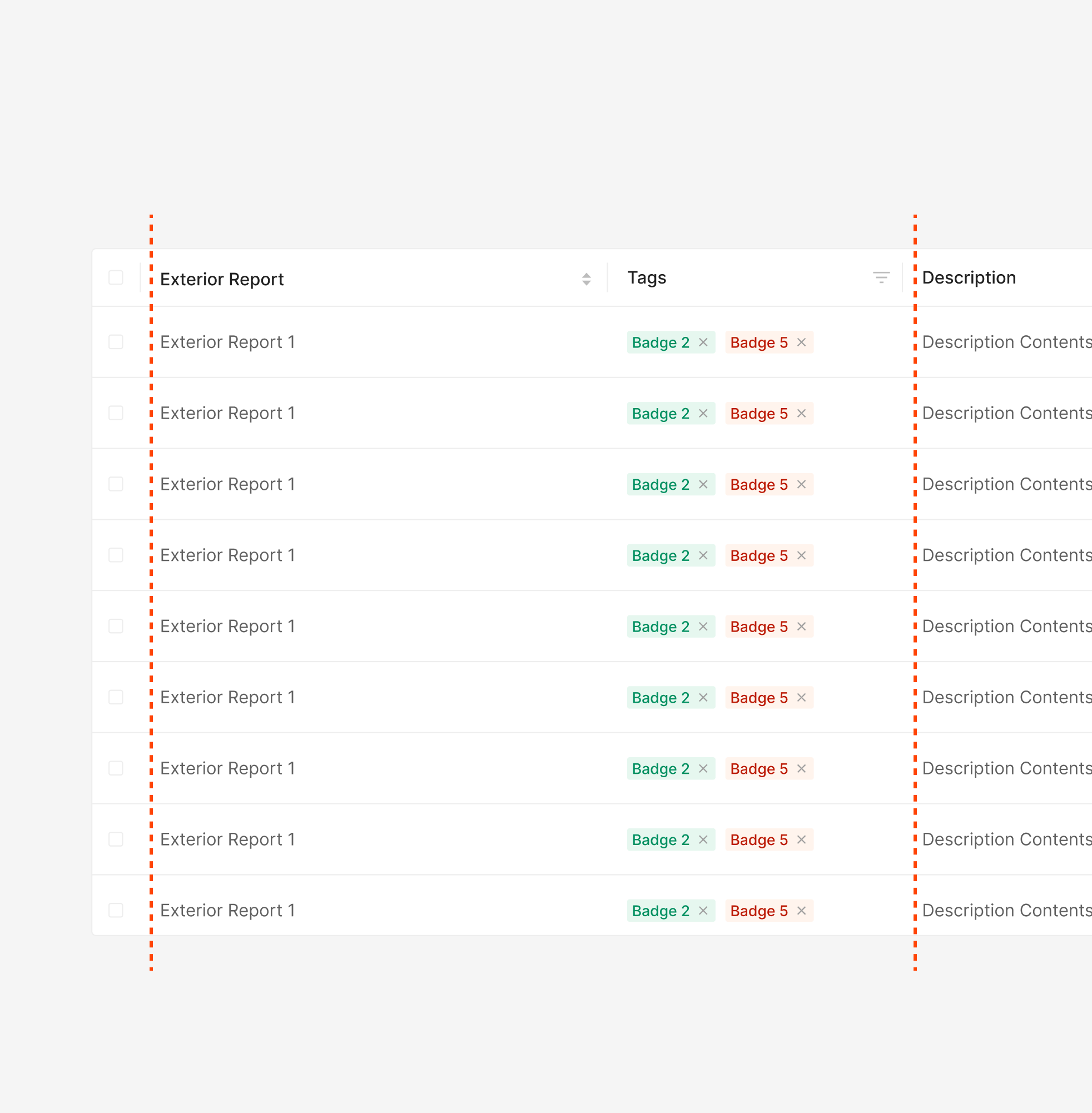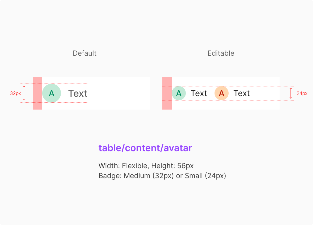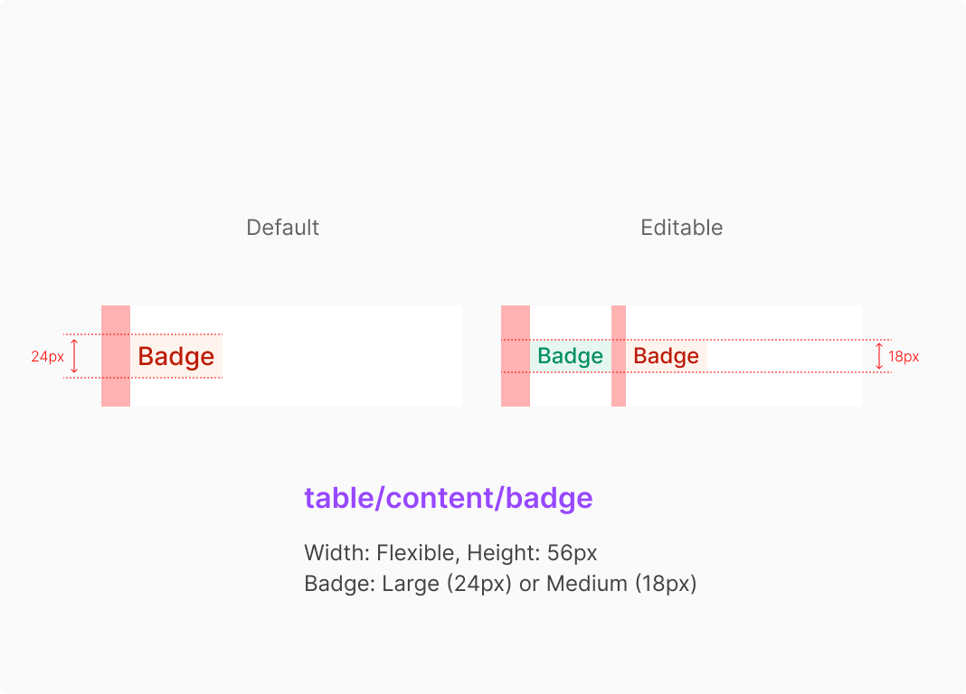 Table Cell 내의 Badge가 포함되는 경우, Table내에서 수정이 가능한 Editable Case와, 수정이 불가능한 Stable Case로 나뉘어 다른 Sizing으로 표출 되는 것으로 합니다.