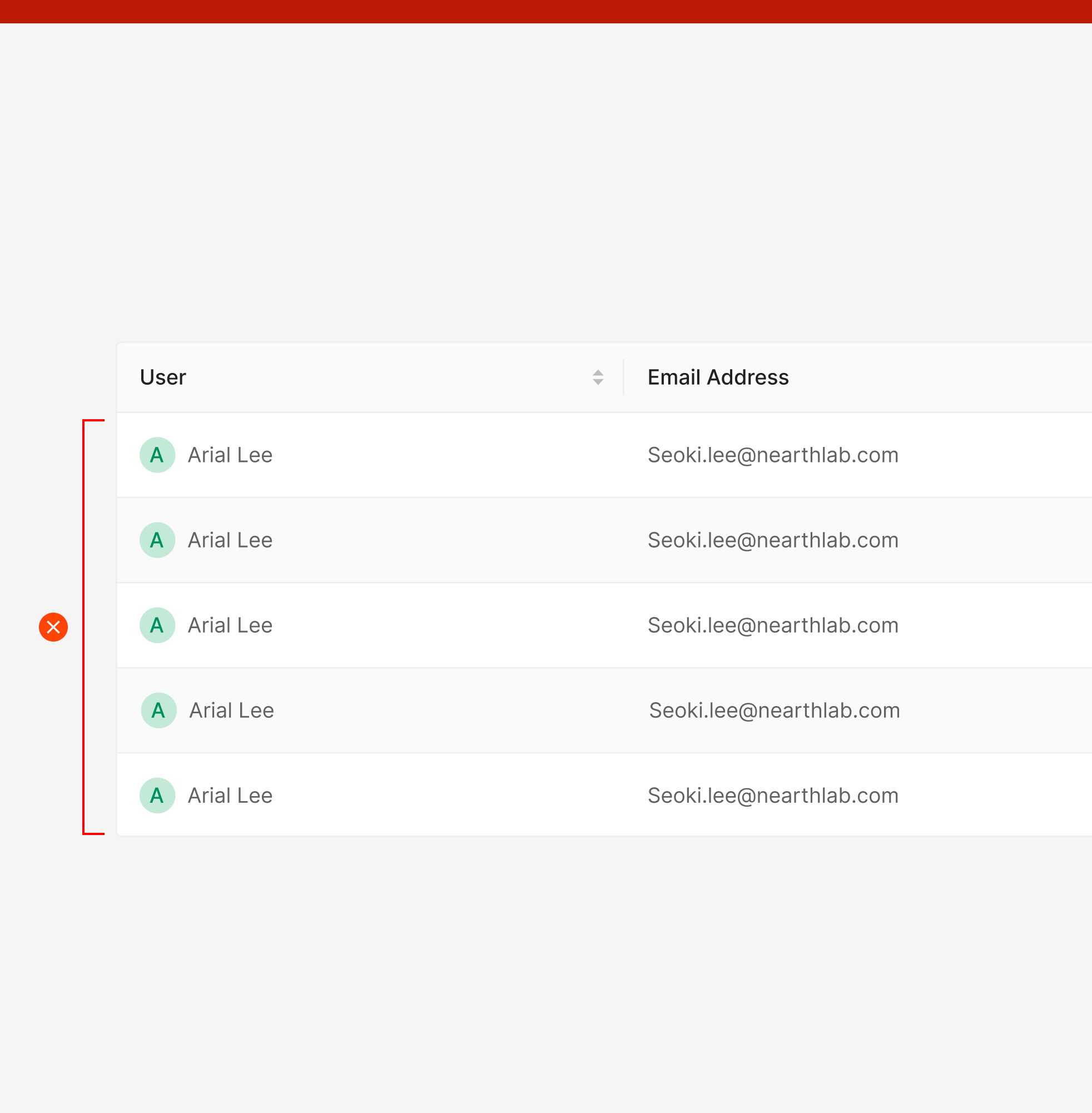 수치적인 정보가 아닌 Textual Data 및 Content Cell 내부에 들어가는 Component Data (e.g. Avatar, Badge...) 등을 정보들은 왼쪽으로 정렬하는 것을 지향 합니다. 수치적 정보의 경우 기본적으로 우측정렬로 배치되는 것을 지향하지만, 한 Column의 표출되는 Data의 Contents 타입이 복합적으로 표출 되는 경우 Numerical Data는 Textual Data와 함께 좌측 정렬으로 통일하는 것을 원칙으로 합니다.