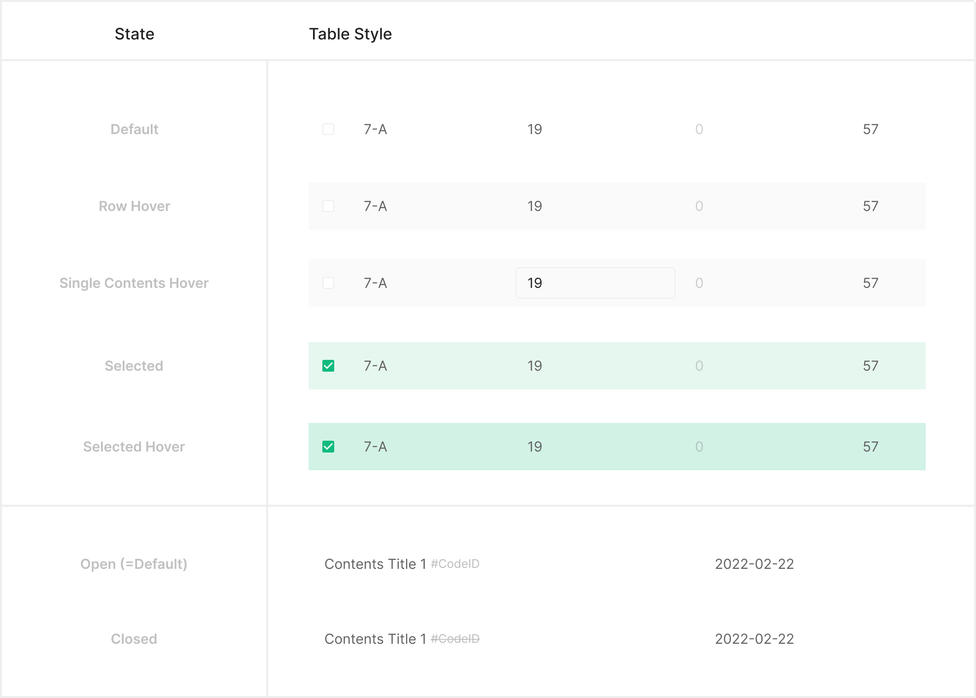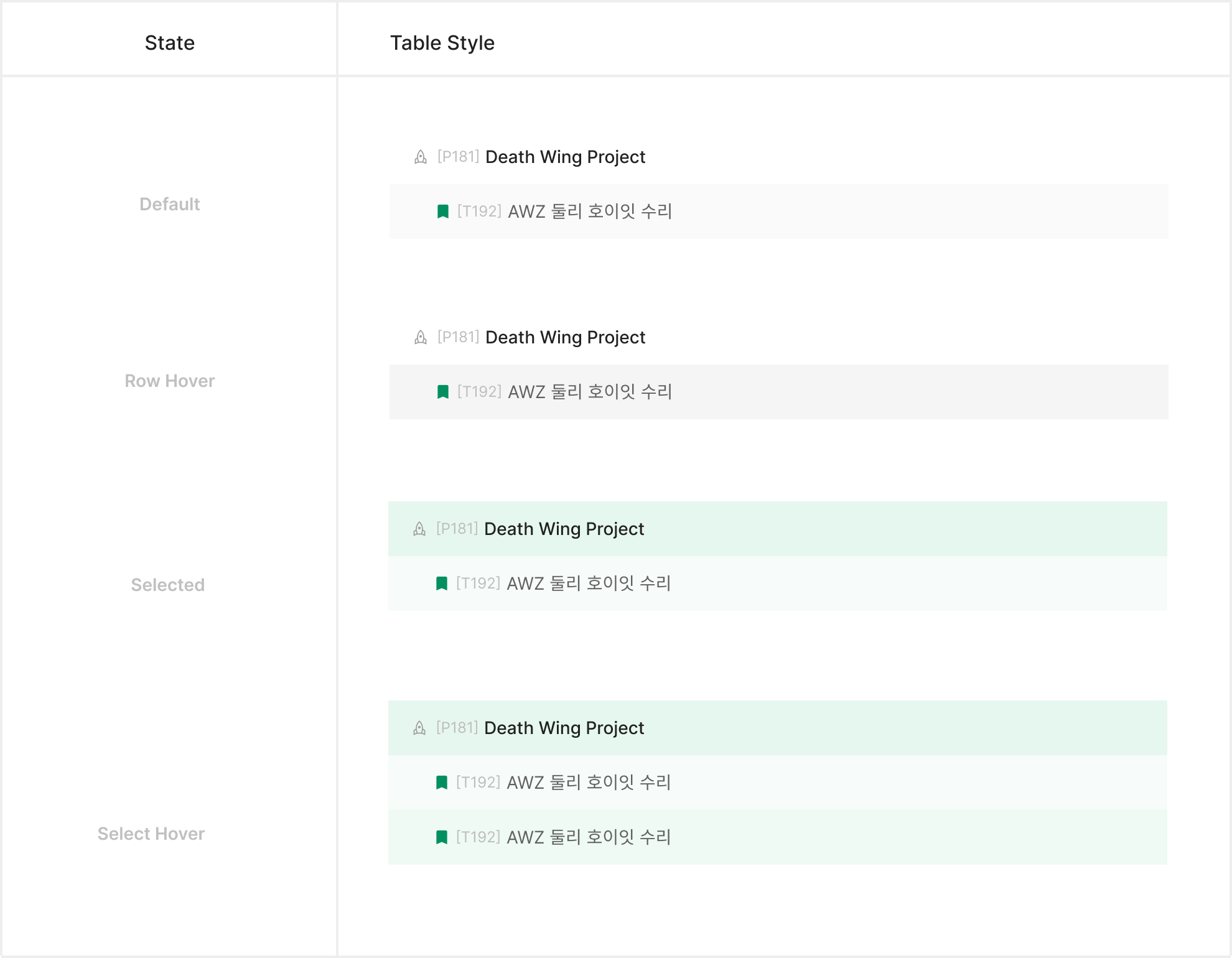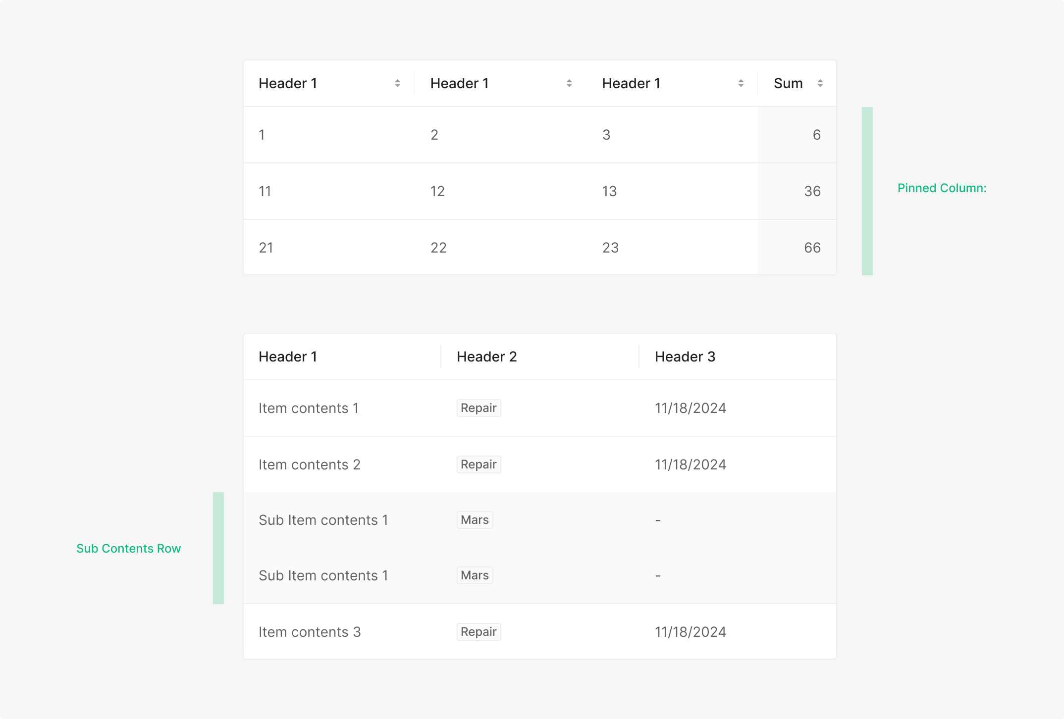 Table Item의 expanded 기능표출 혹은 특정 'Pinned Column / Row' 시에 사용 되는 것으로 한다. Zebra Stripe